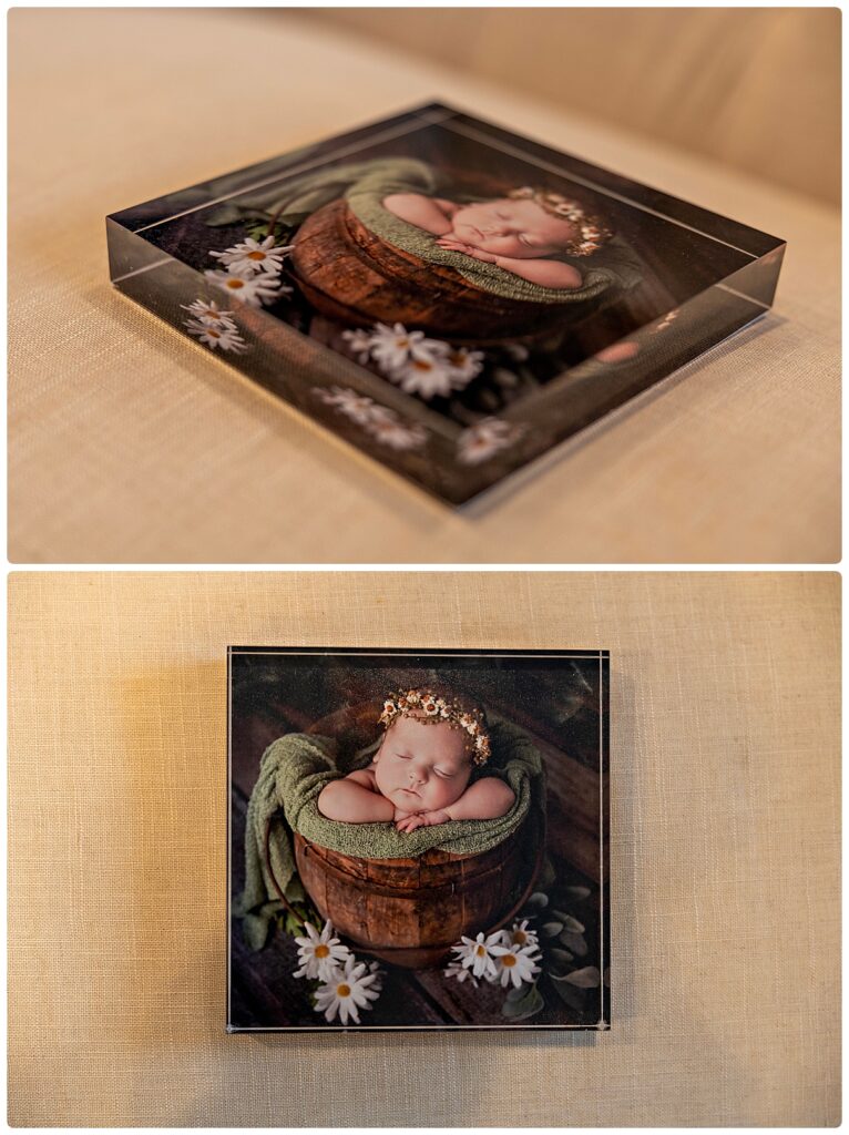• One acrylic block- Our acrylic blocks are simple and great for desks, mantles, and shelves. We offer a 5×7 or  6×6. The features of this product are: glossy smooth surface, &  1″  thick grade “A” acrylic.